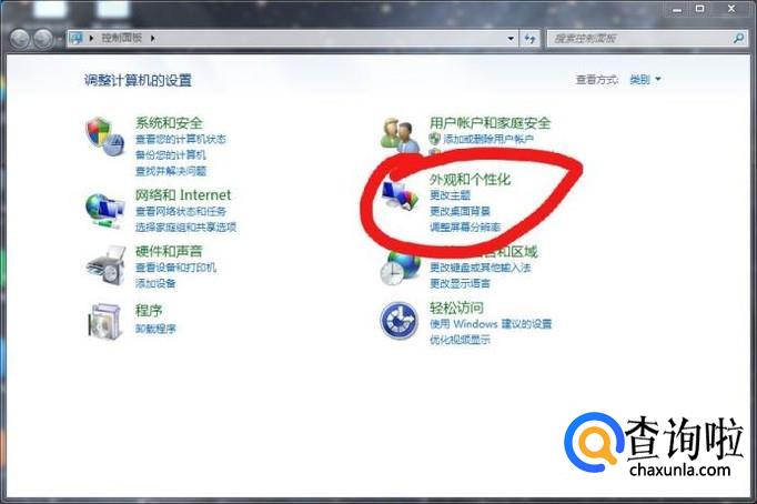 接下来就是设置过程了,我们打开控制面板。选择外观与个性化。接下来在页面点击个性化。