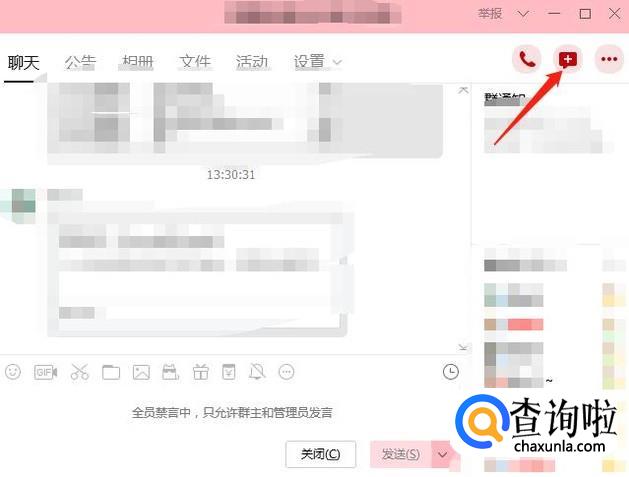 打开电脑QQ,点击其中一个群,点击群右上角的+