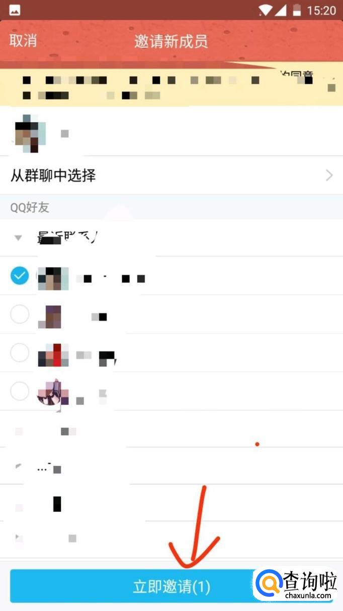 会出现QQ分组,选择自己想要邀请的还有,点击下方立即邀请即可