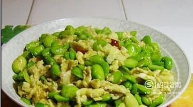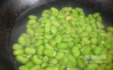 将蚕豆放在热水中焯熟,将鹅蛋炒出放在碗中,将葱姜蒜切好备用。
