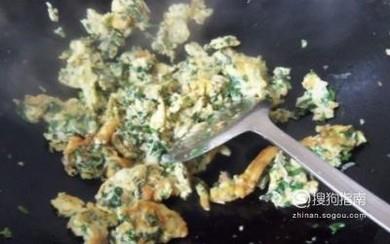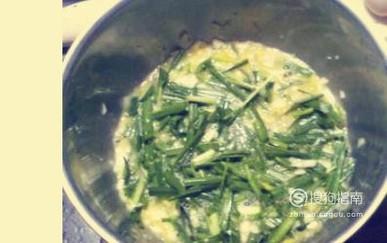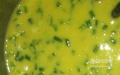 将韭菜清洗干净后切成碎末,将鹅蛋打到韭菜里面,制成韭菜蛋液。