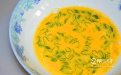 将葱花切成碎末,打入两个鹅蛋和少量的盐调味。