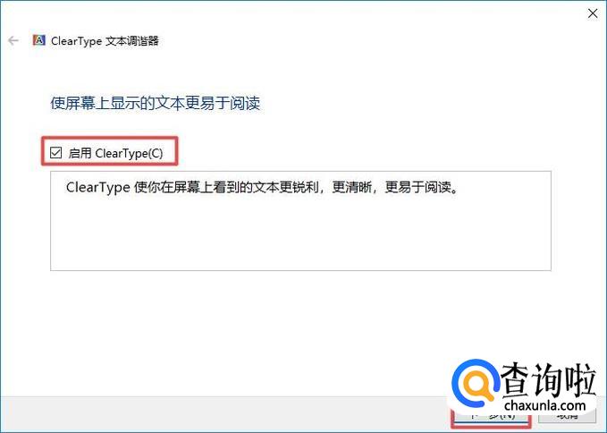 然后我们点击启用Clear Type,然后我们点击下一步;
