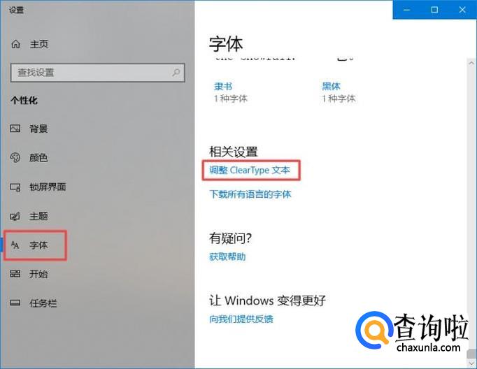 弹出的界面,我们点击字体,然后我们点击调整Clear Type字体;