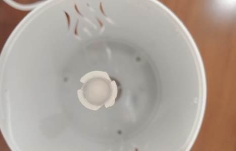 2、旋转打开加湿器的下半部分,稍微加入一定容量的水,加入的水不要太多,最好是使用纯净水减少水中的杂质。