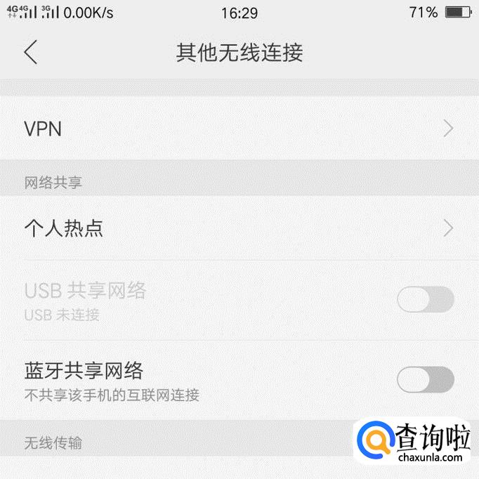 进入设置之后,“其他无线连接”就是我们要找得热点开启入口,点击进入。