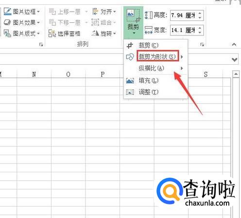 打开图片之后选择图片,然后在菜单区里找到裁剪选项里的裁剪为形状选项,如图所示: