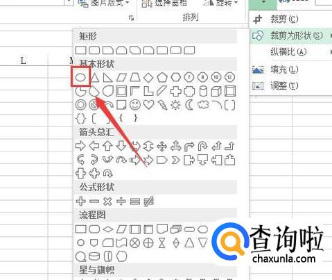 点击裁剪为形状选项我们在其内找到椭圆形选项,如图所示: