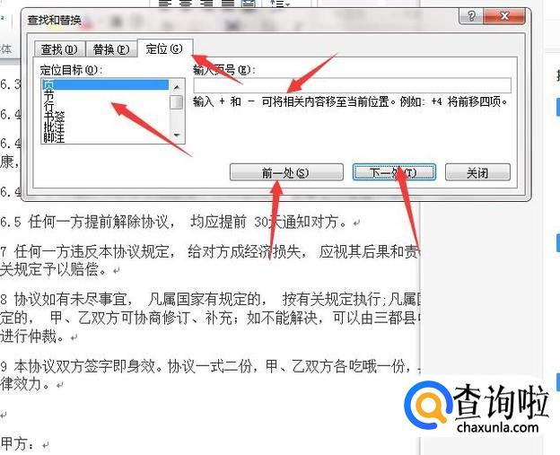 在替换选项点击第三个“定位”,然后在下面选择定位目标为“页”。如果页面比较多的话,可以在里面直接输入页号就可以了。如果页码少的话,用前一处和下一处选择页码就可以了。