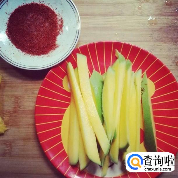 要想做好吃的芒果酸嘢,我们需要准备以下材料:青芒果、辣椒粉、白砂糖等
