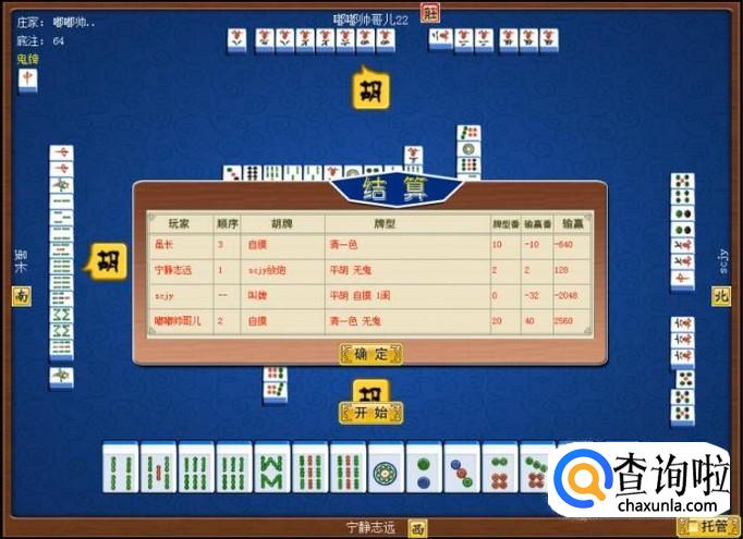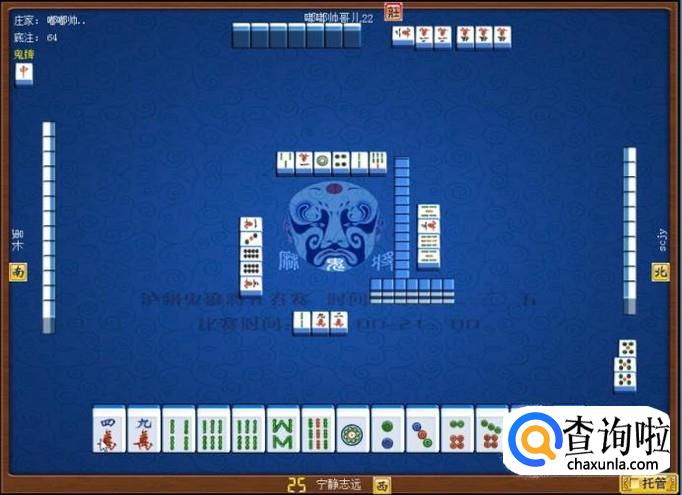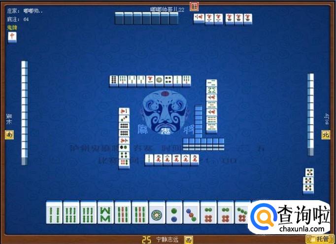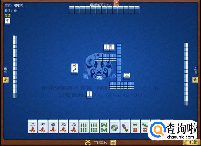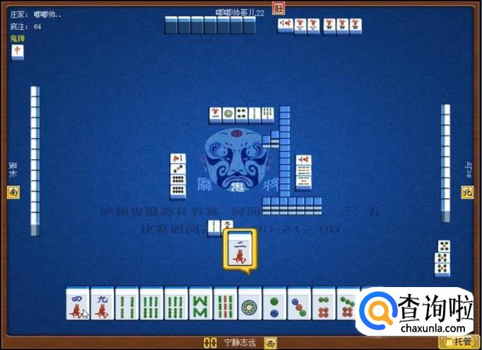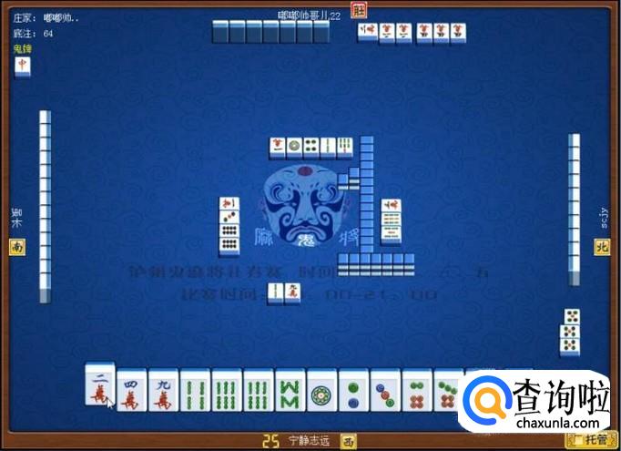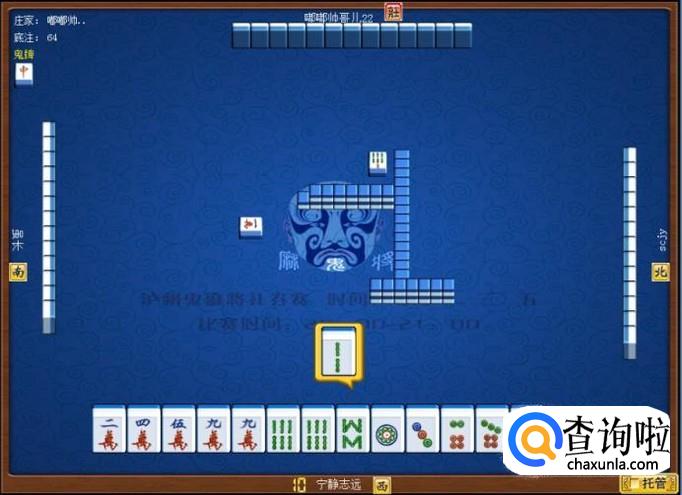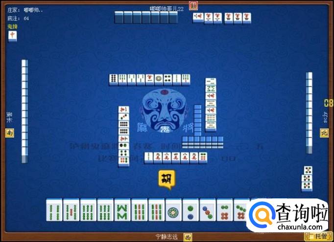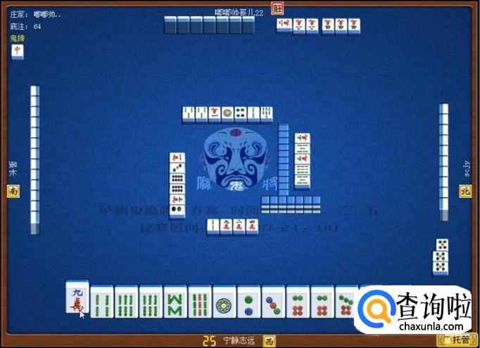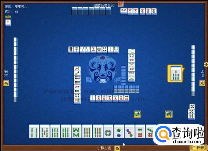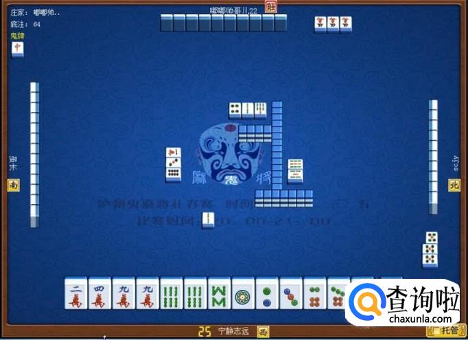 庄家和玩家通过机器桌洗牌,形成了顺风顺水牌局,庄家和玩家将在即将进行的顺风顺水牌局中,鬼斧神工,血战到底。如图所示。
