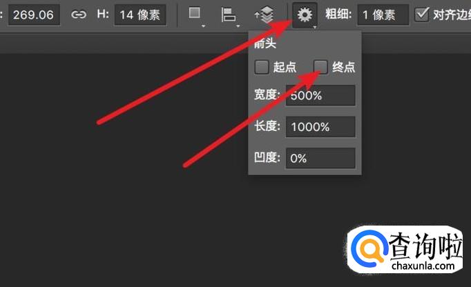如果要画有箭头的线条,我们点击上方的设置图标。在弹出的菜单上,在‘终点’选项上勾选。