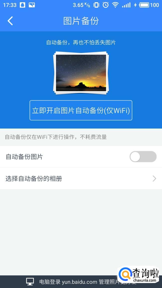 点击图片备份,选择“立即开启图片自动备份”即可进行照片的备份。