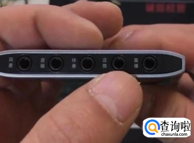 首先你所需要的直播线,伴奏线,耳机线插入声卡的相应的孔上面,如图所示。