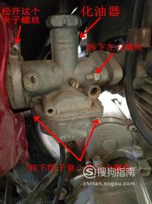 卸下空气调整螺钉,主量孔和怠速量孔。将所有零件放在汽油中清洗,有些不易清洗的部分如油垢,可以使用工业酒精浸泡后,再用刷子刷洗干净。清洗时,应把浮子油针及针阀座,主量孔及主喷油嘴,怠速成量孔和怠速成喷油嘴作为清洗重点。