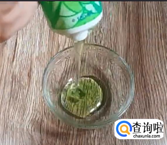 接着,在玻璃器皿里倒入面膜胶。