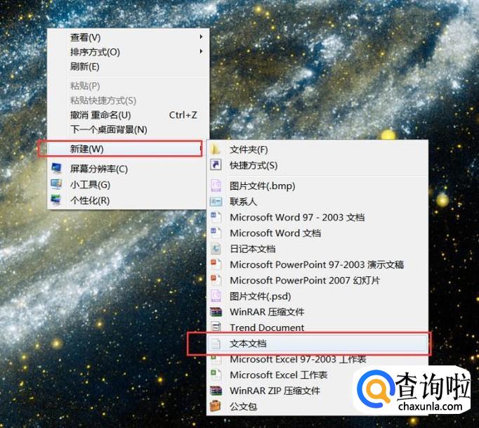 首先,在桌面上击右键,选择“新建-文本文档”菜单选项。