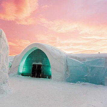位于瑞典尤卡斯耶尔维的冰旅馆为世界上最大的冰建筑物,室内总面积为5000平方米,每晚可接待150位来宾。在过去的5年中,该宾馆每年12月份修缮一次,面积逐年增加。目前,这座冰旅馆以冰雕、电影院、桑拿浴和冰吧为特色,还设有世界上独一无二的冰制祈祷室。