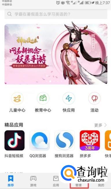 弹出的界面,我们点击管理,如图所示;