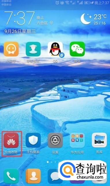 首先,我们打开我们的手机,然后我们点击手机桌面上的应用市场;
