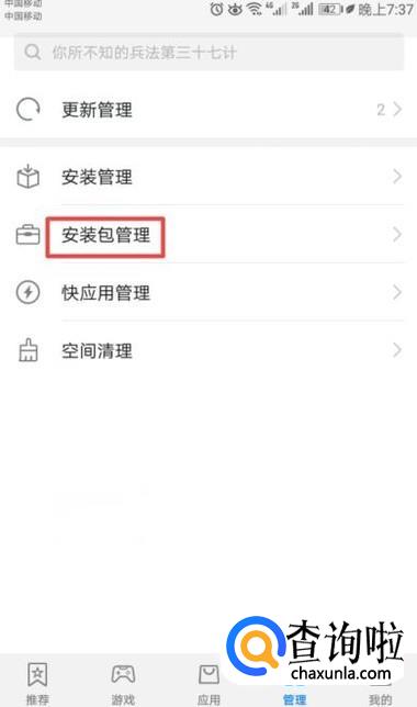 弹出的界面,我们点击安装包管理,如图所示;