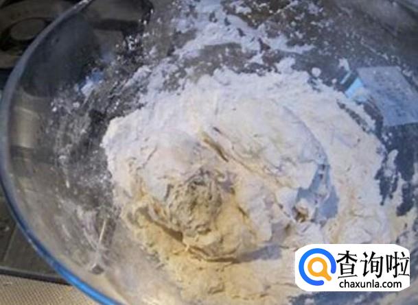将面粉放入盆中,加入冷水,在放入酵母,搅拌,把面用手揉成面团,到不沾手为止。如果水多了,可以加入适度的水,面多了,可以加入适度的面粉。