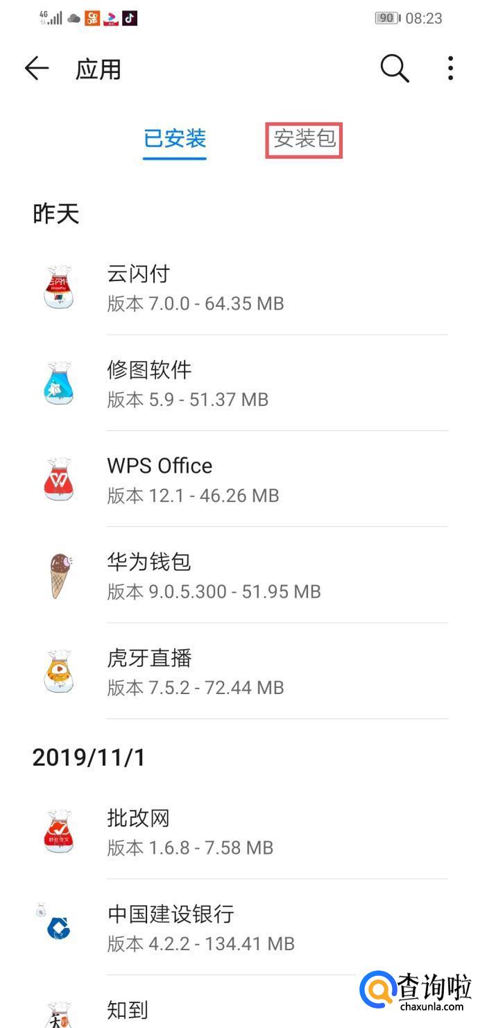 然后在上方点击“安装包”进入页面。