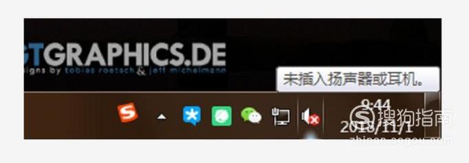 电脑声音图标有一个红叉,鼠标点击这里的时候会显示“未插入扬声器或者耳机”。