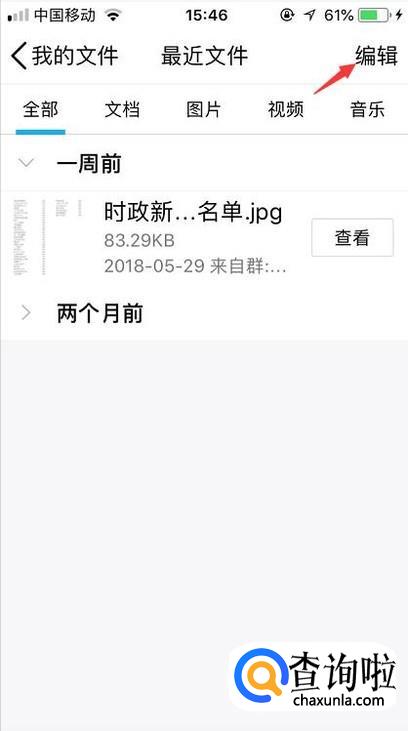 进入到最近文件后找到我们想要删除的群文件,点击右上角的编辑。