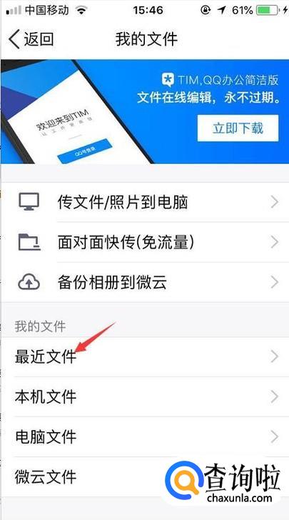 接着在我的文件里点击一下最近文件。