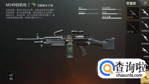 M249轻机枪是全自动开枪,可以安装一百发子弹,可以用火力暂时压制住敌人,前支撑可以明显降低趴下时的后座力