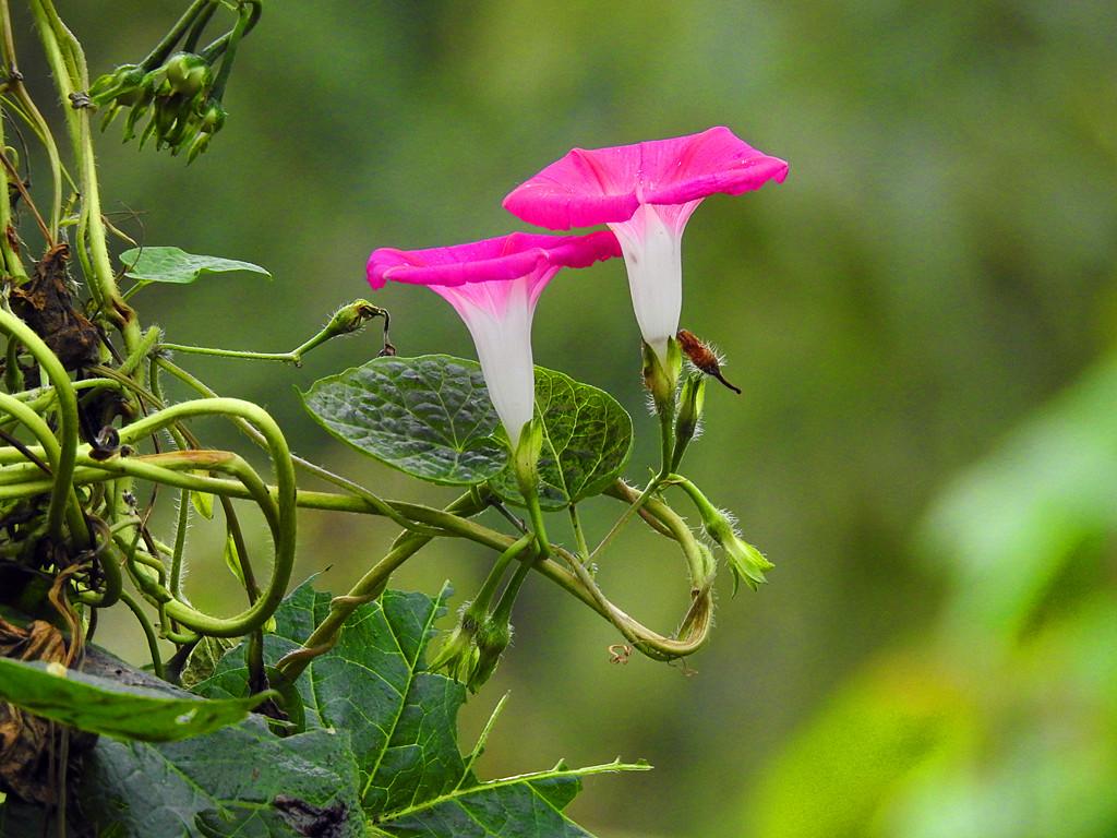 10、在叶柄与藤的交接处都长着一束花蕊,小的像米粒,大一点的像小青椒,马上要开的像刷子。过了几天,花儿陆续伴着太阳升起,欣花怒放。一朵朵花儿像一只只小喇叭,所以也像喇叭花,太阳落山时,花儿也谢了。第二天清晨,太阳升起时,又有一批花儿从梦中醒来,绽开美丽的笑脸。