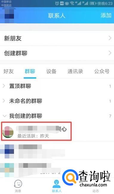 首先,我们打开我们手机上的QQ,然后我们点击一个QQ群聊;