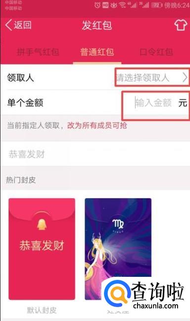 之后我们选择指定人员,然后输入金额,之后我们就可以发出去了。