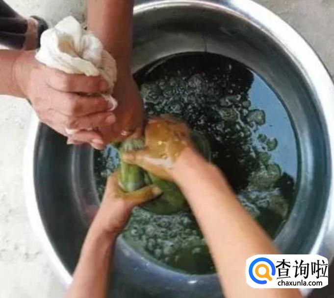 最后准备一些草木灰,把草木灰和观音草的汁混合,搅拌均匀后,放入阴凉的地方,半个小时就会凝固成观音豆腐。