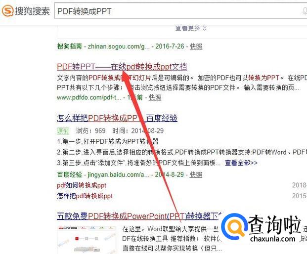 进入之后,搜索“PDF转PPT”,点击并进入官网,如图所示。