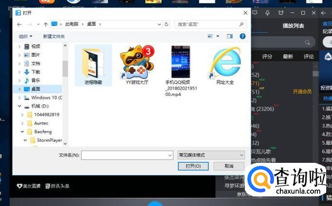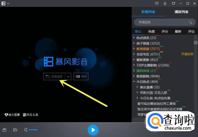 然后打开暴风影音软件,点击打开文件,选择我们需要翻转的视频文件