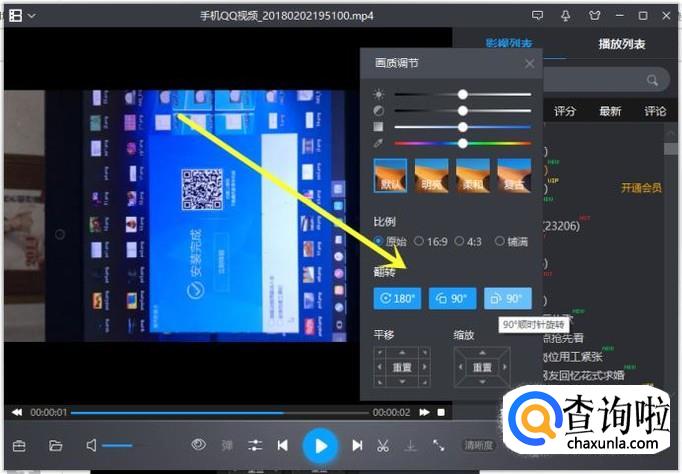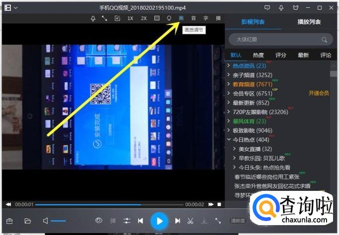 然后点击暴风影音的右上角的画质调节,然后选择视频翻转的方式