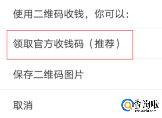 然后我们领取官方收款码。