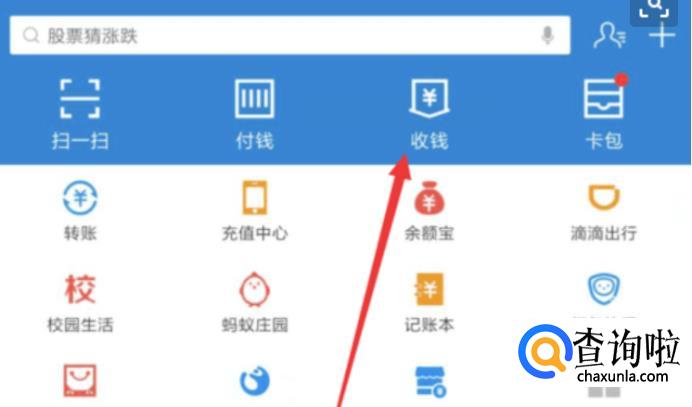 首先打开支付宝,在首页顶端找到“收钱”。