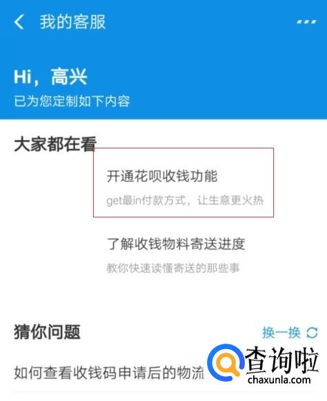 找到“开通花呗收钱功能”。