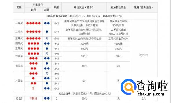1、 超级大乐透按当期销售总额的51%、14%、35%分别计提彩票奖金、彩票发行费和彩票公益金。彩票奖金分为当期奖金和调节基金,其中,49%为当期奖金,2%为调节基金。