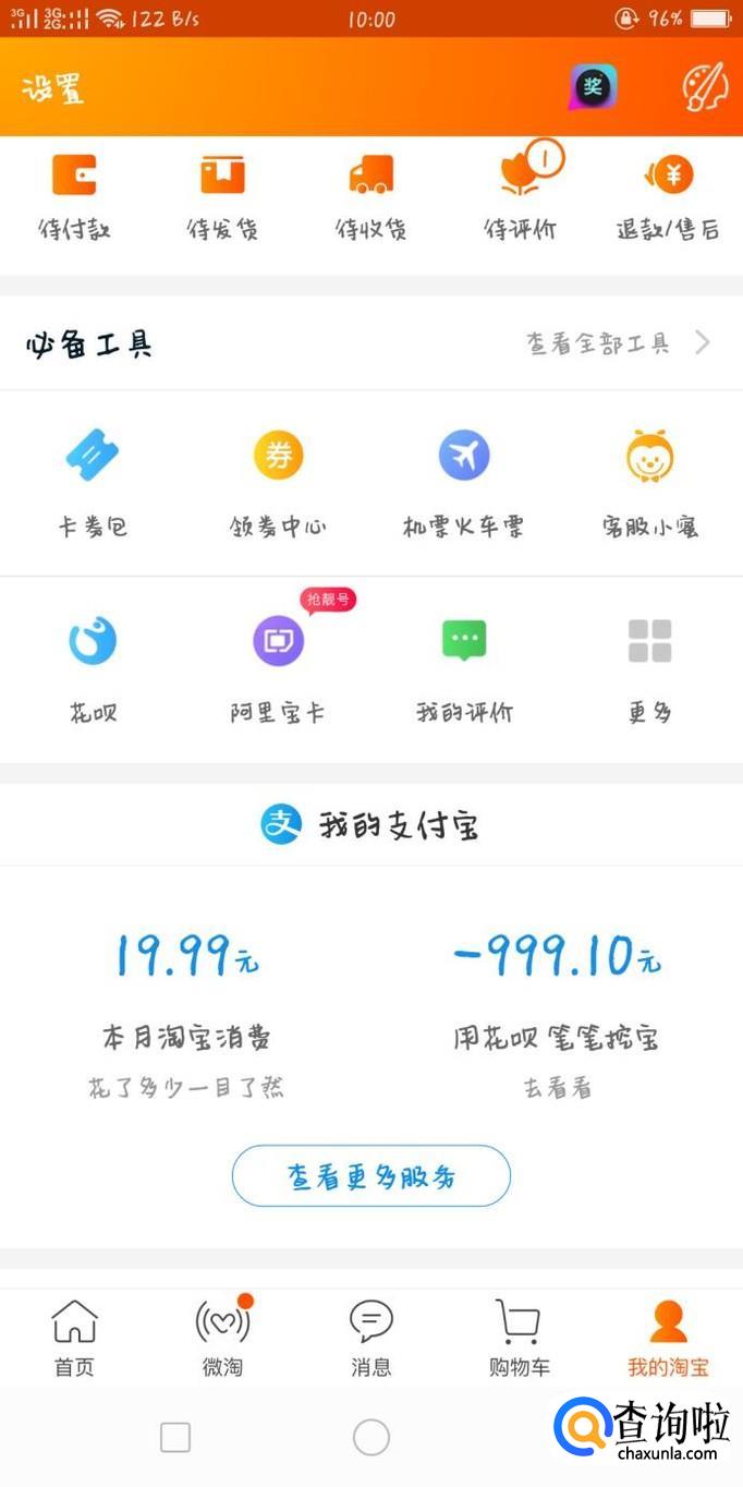 首先打开淘宝并登录你的淘宝账号,然后进去我的淘宝,找到该页面上的更多,点进去。