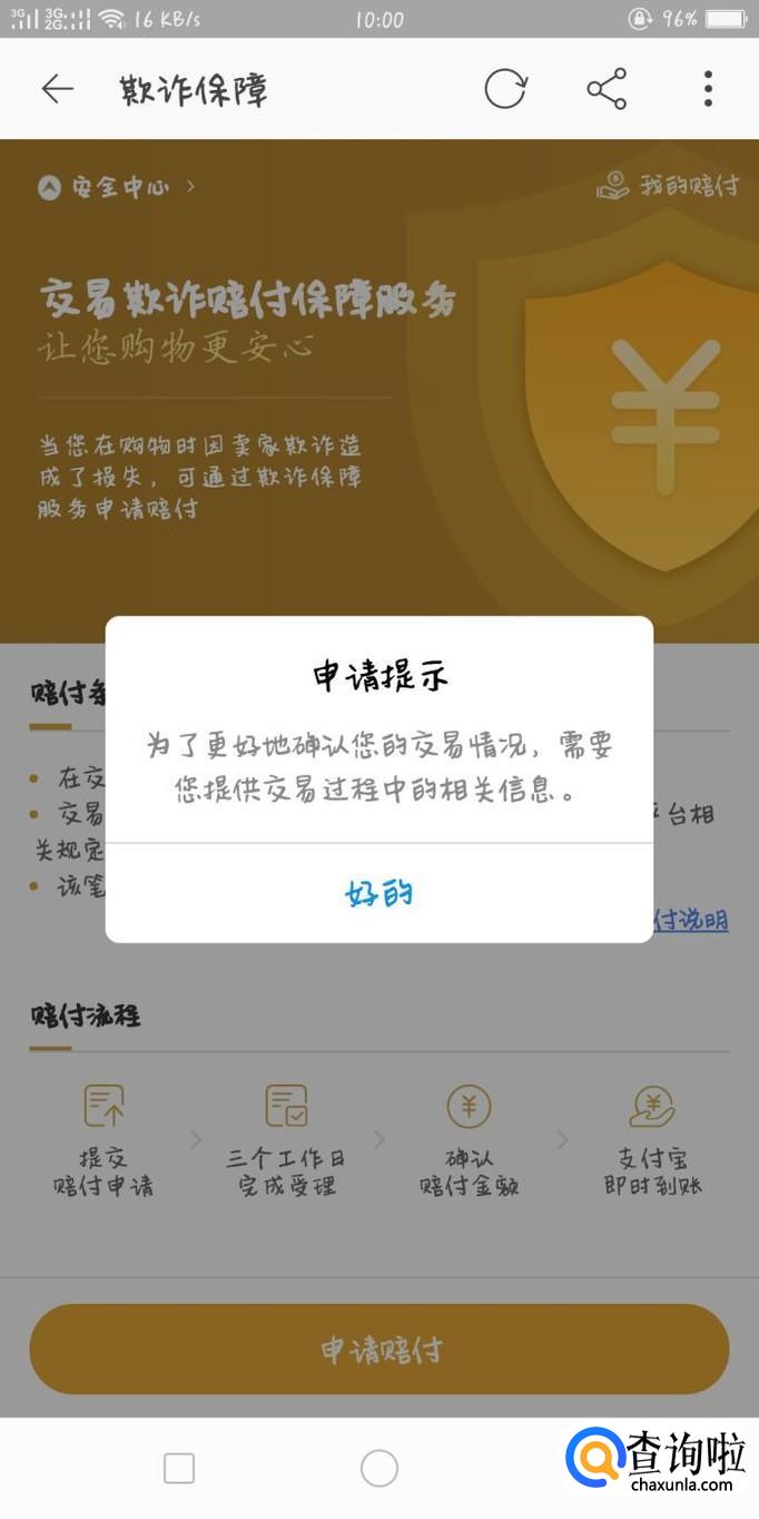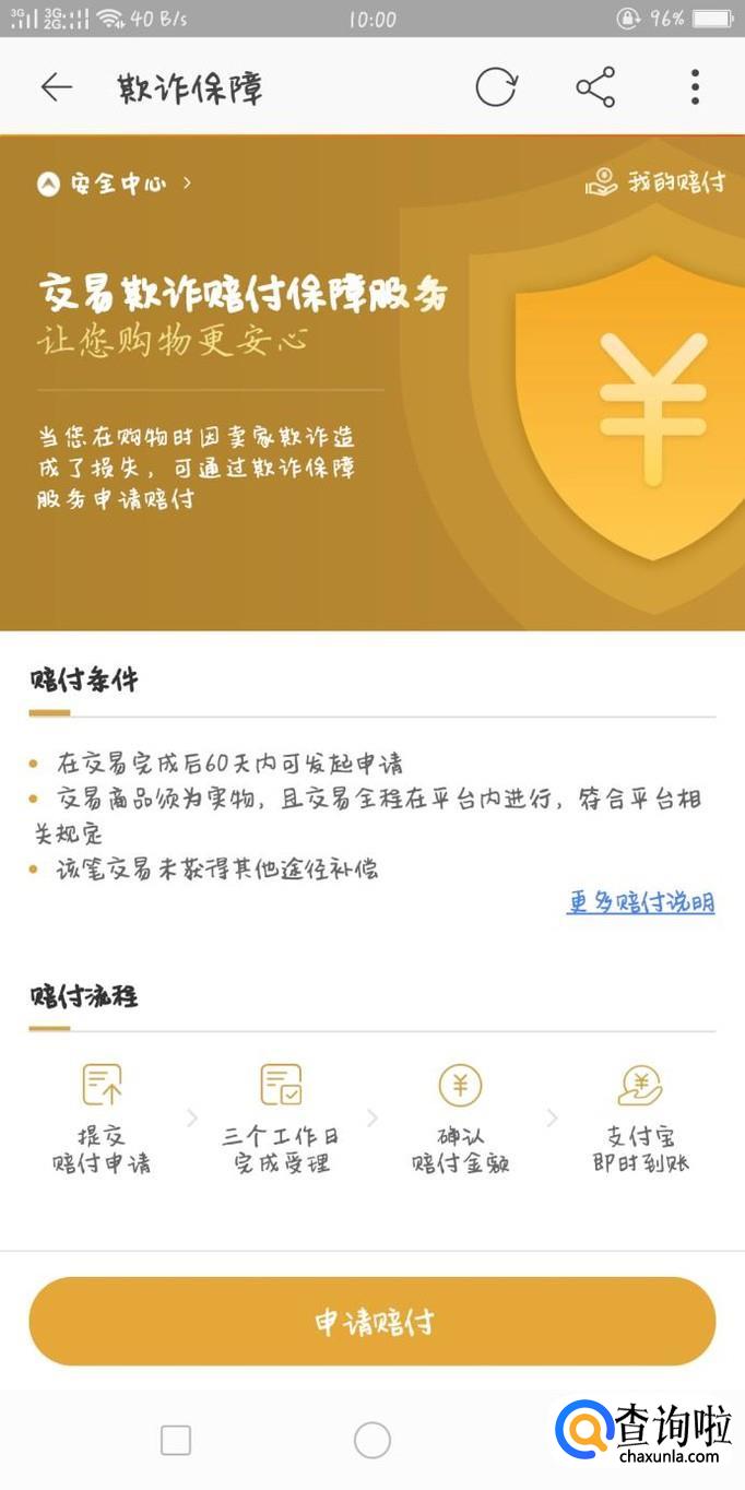 点进去后找到【欺诈保障】,点击进入另一个页面,看清楚上面的条件。
