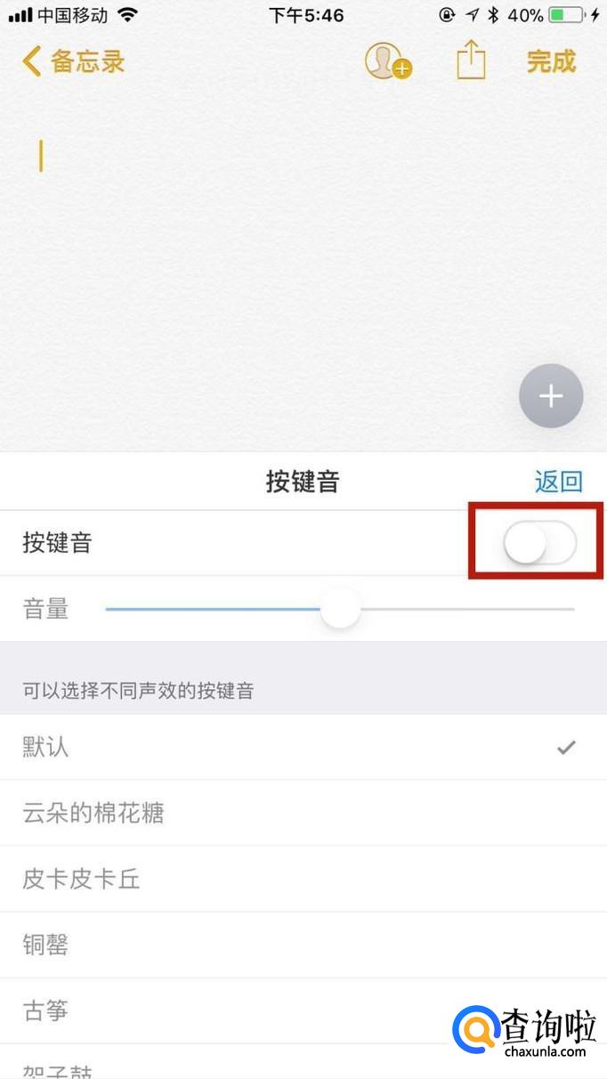 接着点击开启按键音开关,如下图所示。