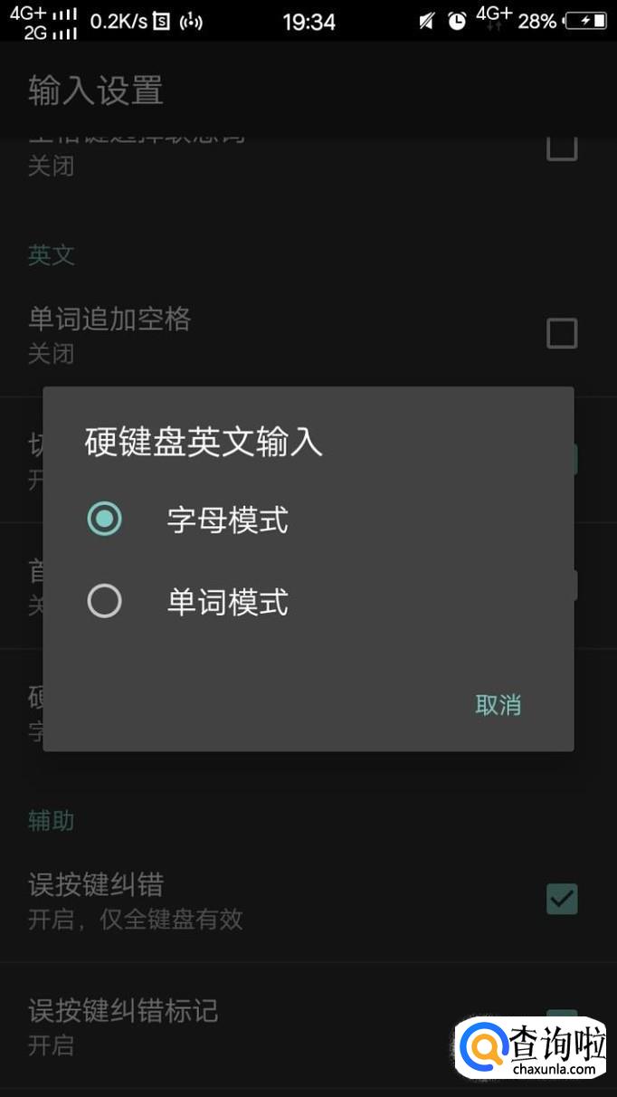 最后,我们手动找到并且点击硬键盘英文输入,再点击字母模式即可。