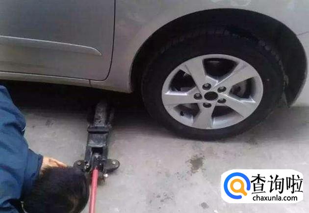 首先使用千斤顶顶住需要更换轮胎的一侧,顶住的位置是轮胎的横梁,千万不能顶住车门;