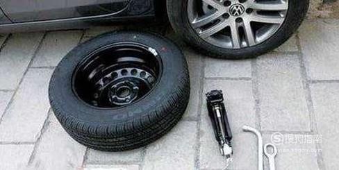 把轮胎搬下来,放在一边,然后装上准备好的备胎,保证备胎能够使用哦;