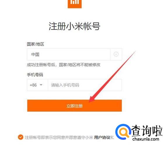 进入之后,输入自己的手机账号,点击“立即注册”即可,如图所示。