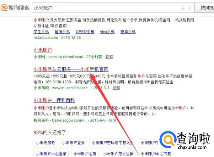 进入之后,搜索小米账户,点击并进入,如图所示。